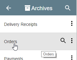 To select from the available Searches for an Archive, place your mouse pointer over the Archive. When the Search () icon appears, click it.