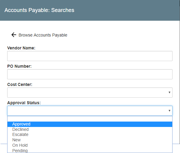 If the Search has a standard Pick List Field, click on the Field to expand the drop-down list and select the value you wish to use in your Search.