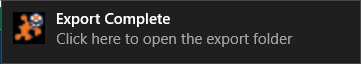 When the export is complete, you can click on the message to go to your export location.