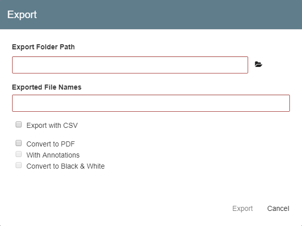 In the Export dialog that appears when exporting from Search Results, enter or browse to the folder path the document will be exported to in the Export Folder Path text box. This is the destination folder where files will be saved. The export process will create a folder beneath the specified export folder, named with the Archive name of the selected documents.