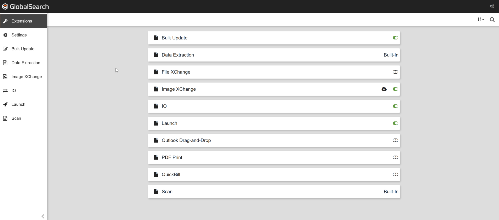 The Launch extension enables both Launch and Email functionality in GlobalSearch. If Launch is not enabled, you will not see any Launch-related menu items in the GlobalSearch menus, and Email menu items will open documents as PDF in the browser's default PDF viewer. Launch and Email functions are available on the Actions menu of the GlobalSearch Document Viewer.