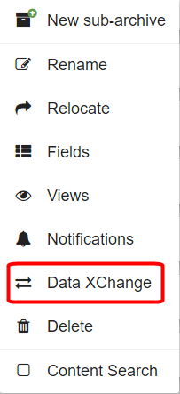 Click the Options icon for the selected Archive and select Data XChange.