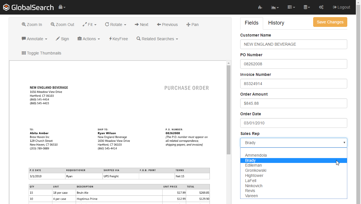 The use of lists in fields is essential to any ECM strategy. Lists provide a high level of standardization that allow users to quickly index and retrieve information with little or no interpretation of how it should be named. Optionally, Lists can be presented as the standard drop-down variety or as a "type ahead" where users begin entering a few characters to be presented with the available options. Selecting your preferred option for working with lists is determined during Field configuration. Lists can also be bound to another application (like your financial or human resources application) so that maintenance of the list is performed in only one place and the lists are always in sync.