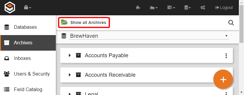 If Show All Archives is enabled, users will see all Archives in the Archives Pane, whether they have View permissions to an Archive or not. While users without View permissions can see that an Archive exists, they will not able to see any contents of the Archive without being granted access. Without View permissions, the Archive will appear empty when selected. If Show All Archives is not selected, users who are not administrators will only see the Archives in which they have been granted permissions. This is a database-wide setting for all users.