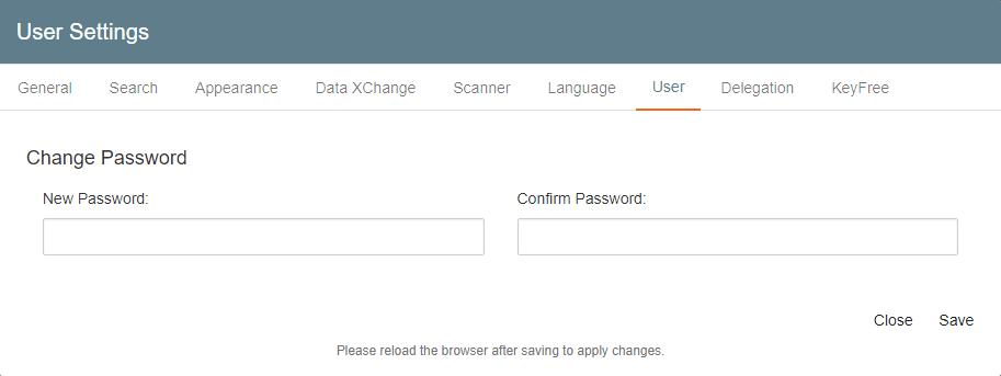 If you are logged in as a Square 9 User, you will see a tab, called “User” in the Settings window. From here you may change your Square 9 User password. For GlobalSearch C2 accounts, default passwords must be at least 8 characters in length, including one upper case letter and one number. Administrator's do have the option to change the default complexity requirements, so it's possible your system may differ. It's always a good idea to confirm requirements with your C2 Administrator. For on premise customers, there is no forced complexity, but it is always recommended and is configurable by the administrator.