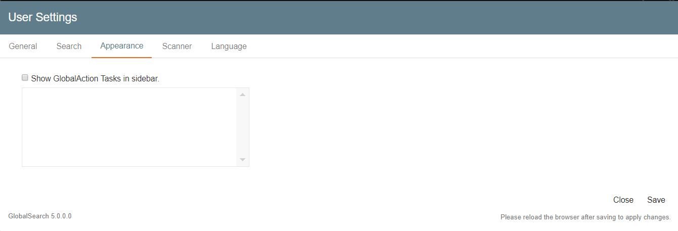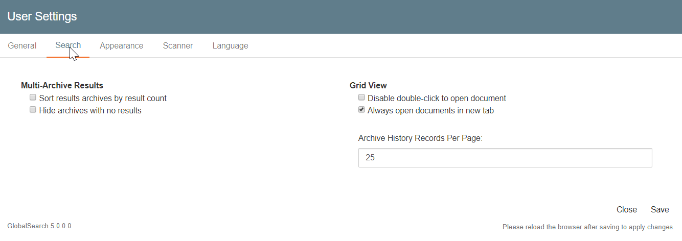 You can set preferences for your GlobalSearch interface from the User Settings for features such as the interface language, forwarding email notifications, or modifying OCR settings for Key Free Indexing.