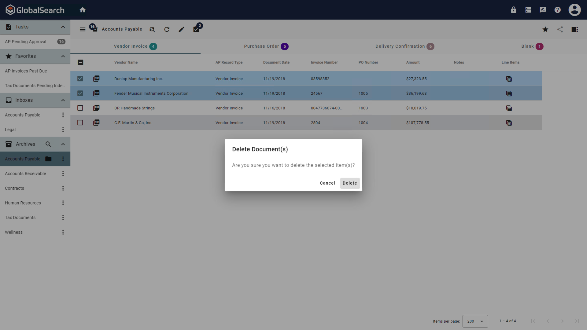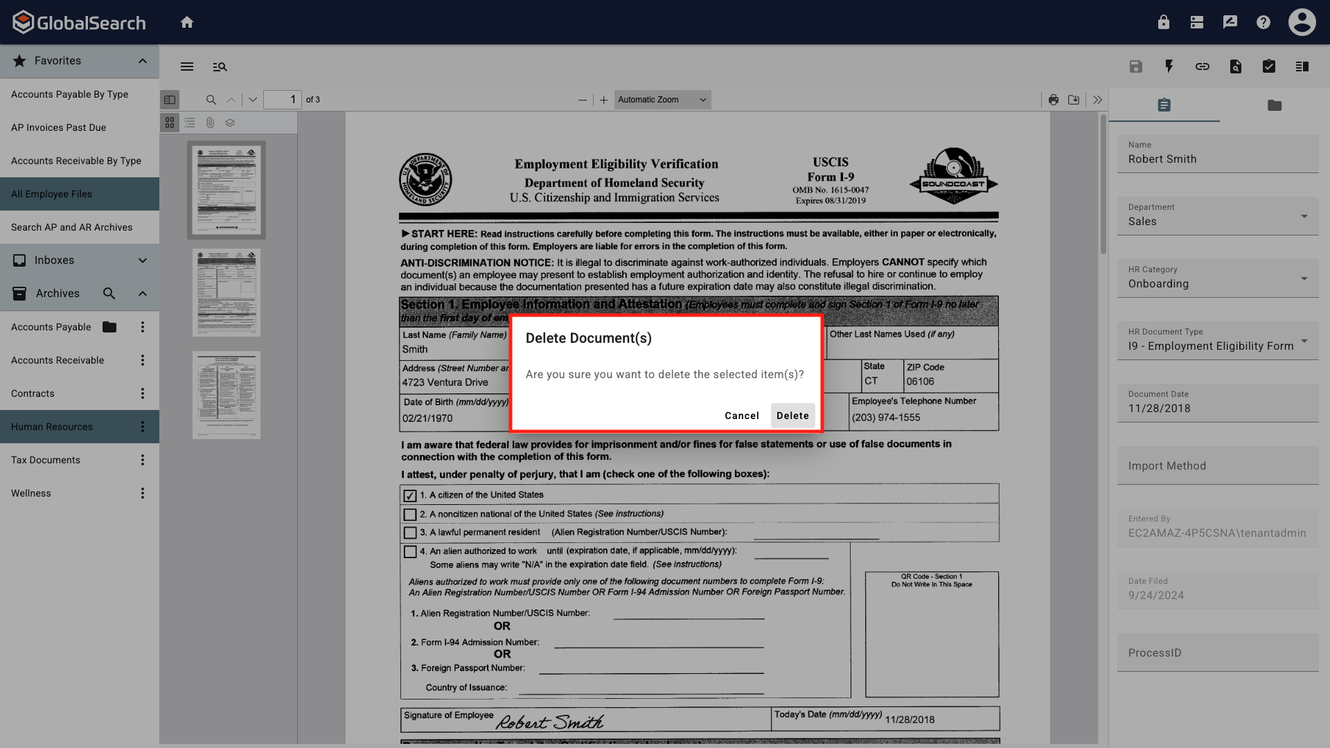 Delete Documents(s) Confirmation