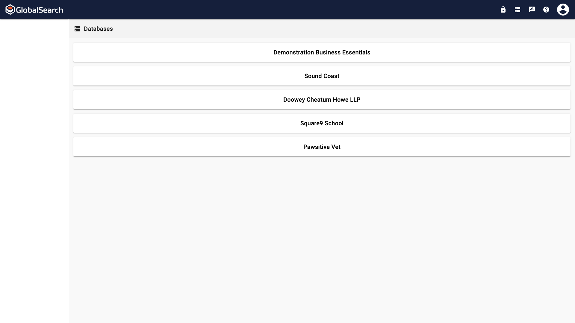 Once you have logged into a database, you can select a database from the GlobalSearch Toolbar by clicking the Database Select ( ) icon.