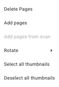 Rotate the selected pages in 90 degree increments. Rotate Left rotate the page counterclockwise. Rotate Right rotates the page clockwise.