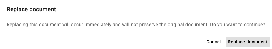 Exercise caution when replacing documents. This action occurs immediately and the original document is lost. This cannot be undone once completed.