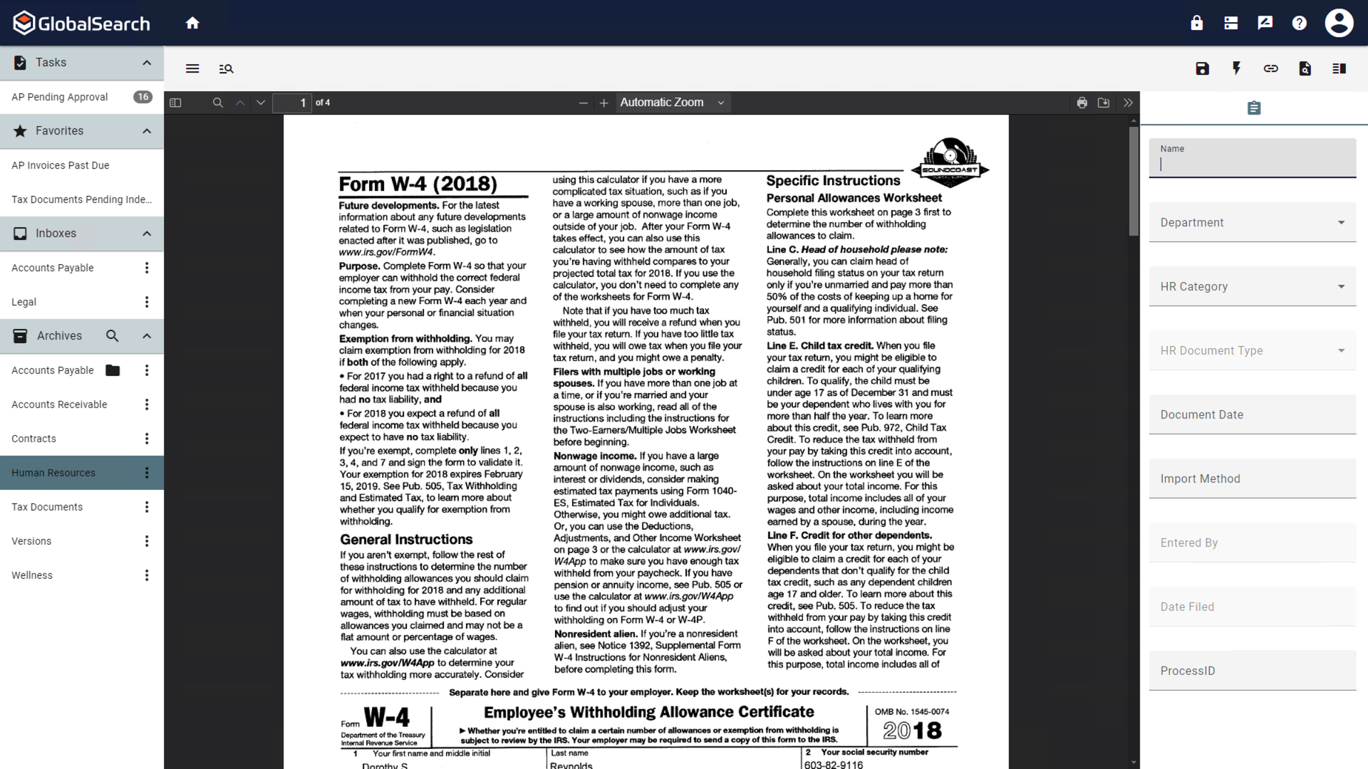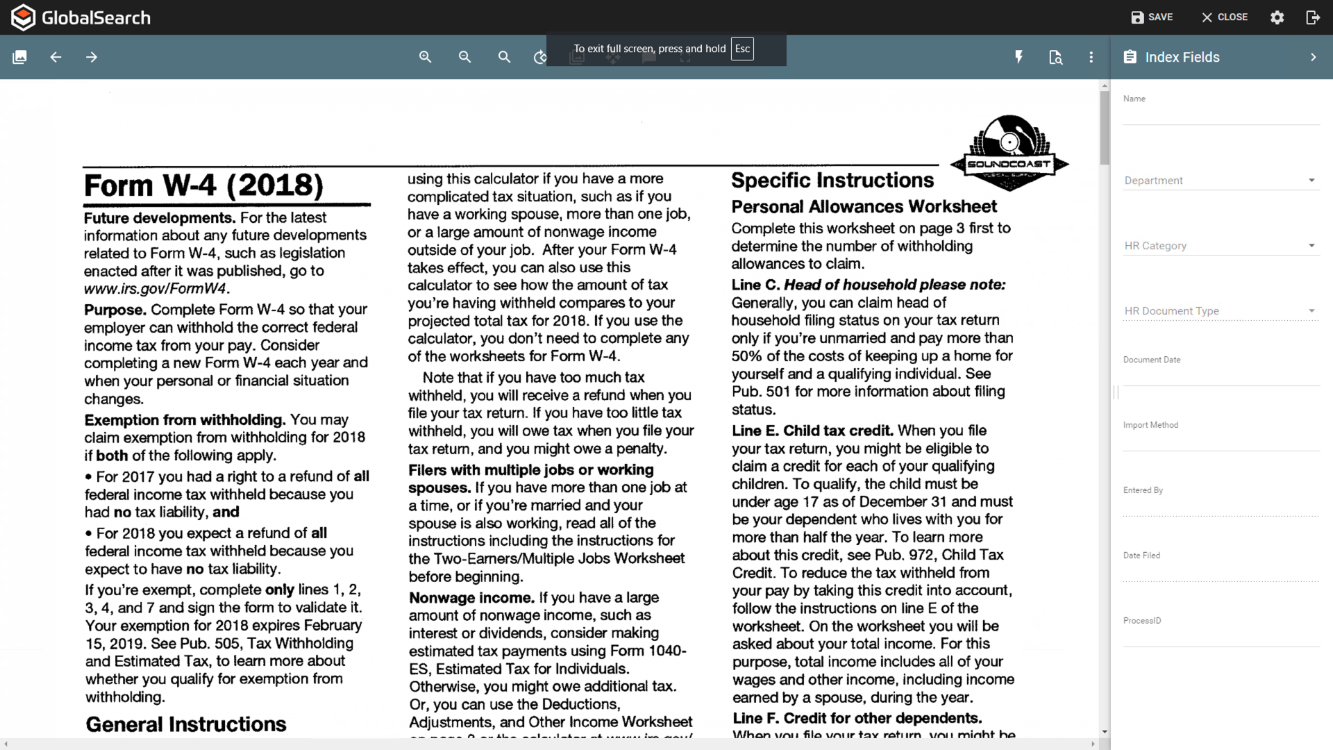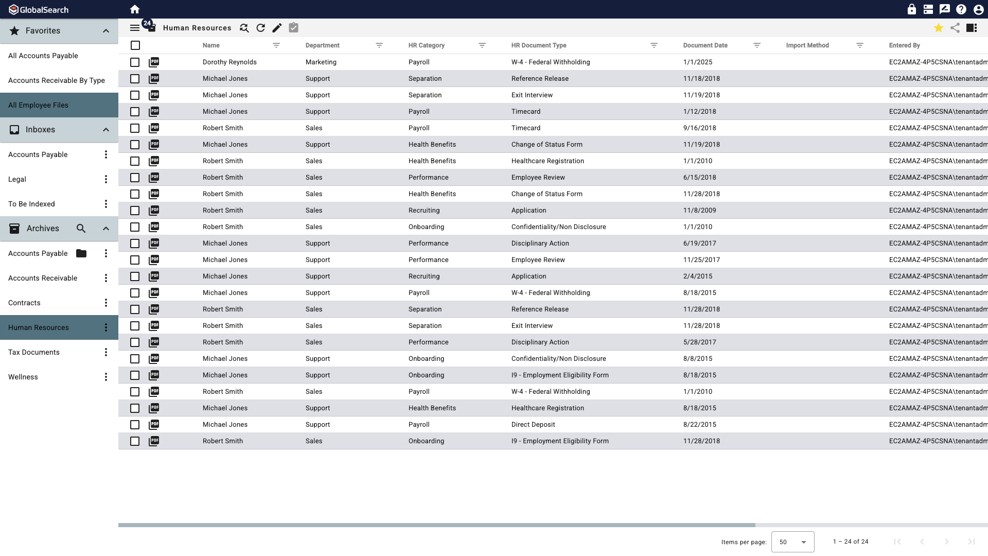 Persist archive import data - When selected, GlobalSearch will cache the last data entered in an archive. This is helpful when indexing multiple documents to the same archive with similar data. Consider indexing a new employee’s HR file. After scanning and indexing one document to the HR archive, it may be desirable for that same data to automatically be present for the next scan. In this way, minor changes (like changing the document type) can be made without rekeying everything.