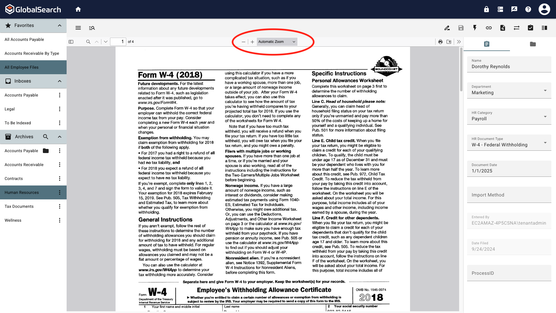 Default Document Zoom - This sets the default zoom when opening a document in the document viewer. To maximize the the document in the document viewer, set the default document zoom to Page Width.