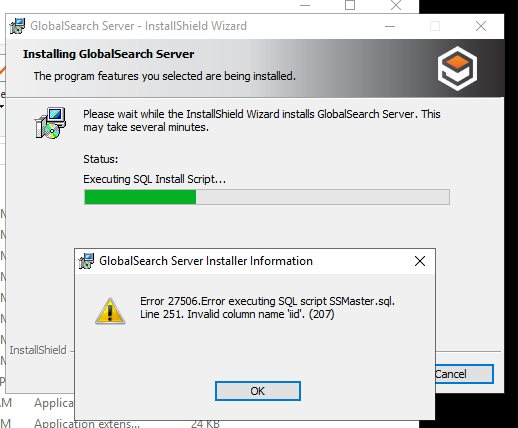 Inside of Global Search error if the install goes through.