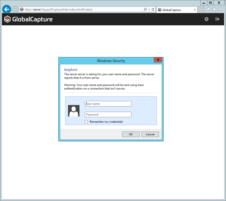 When browsing to GlobalSearch Web or GlobalCapture pages in Internet Explorer you may encounter a blank screen. You will not be prompted to authenticate, and a blank browser window will remain in view. This is typically related to browser settings. By default, Internet Explorer displays what it determines "local" or "intranet sites" to be displayed in compatibility mode. If you are experiencing a blank page problem when trying to connect, confirm this is the problem by opening IE's developer tools by pressing F12 on your keyboard and looking at the compatibility mode of the browser.