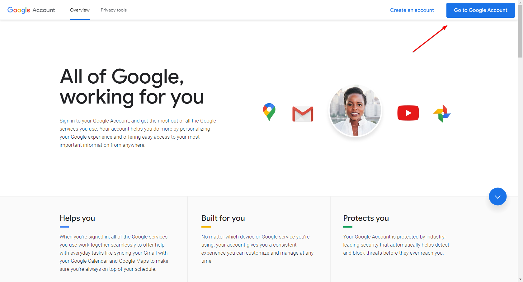 If you are not already signed in to your Google Account, click “Go to Google Account” in the top-right corner.