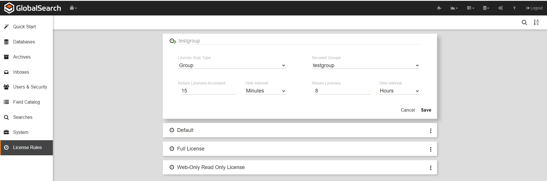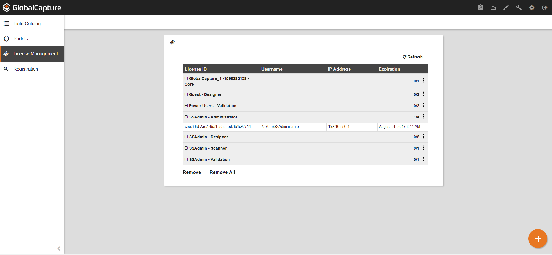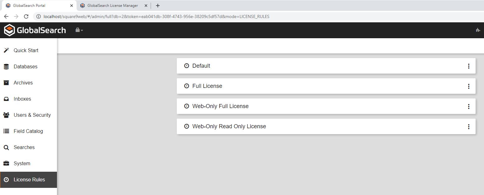 GlobalSearch desktop client and GlobalSearch web client use Token 'Licenses' to keep track of license consumption. These are commonly referred to as "Tokens" or "Seat Licenses." GlobalCapture uses a similar licensing schema, however it is separate from GlobalSearch's licensing system and will be addressed in a separate section. Token Licenses should not be confused with Feature Licensing (see above), which has to do with Registration. License Tokens exist in order to manage user sessions.
