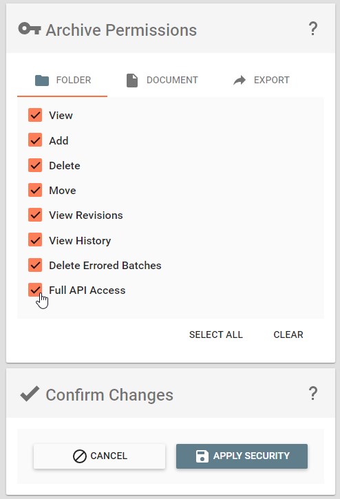 Under “Archive Permissions”, ensure that “Full API Access” is selected