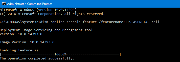 DISM /online /Enable-Feature /FeatureName:IIS-ASPNET45