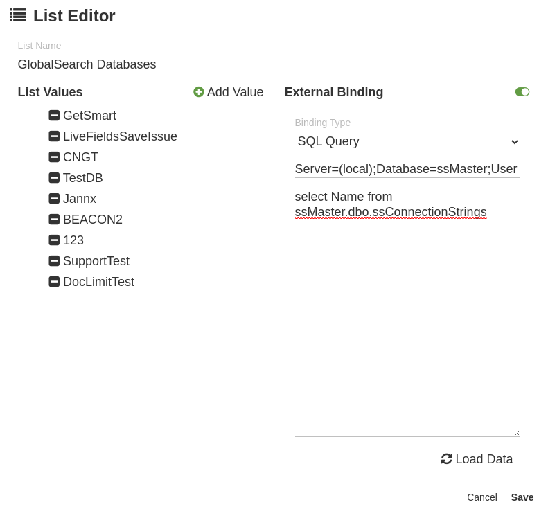 In this example we’ll use the ssMaster.dbo.ssConnectionStrings table to return a list of the GlobalSearch databases connected to your GlobalSearch instance.