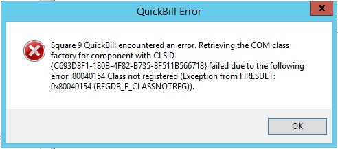When trying to perform a QuickBooks push, you receive an error "Retrieving the COM class factory for component with CLSID ... failed due to the following error: 80040154 Class not registered"