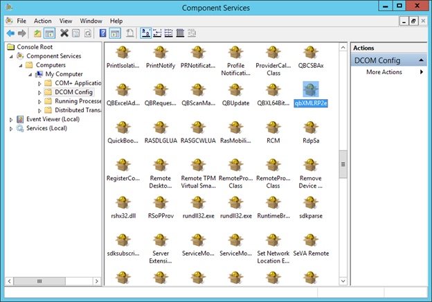 - In the list of component objects, locate qbXMLRP2e. Right-click on it and select Properties