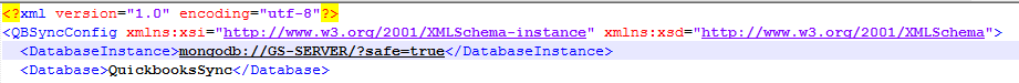 - In the <DatabaseInstance> section, make sure that the URL to a valid MongoDB is present. If using QuickSync in conjunction with GlobalSearch, this is most likely the GlobalSearch server.