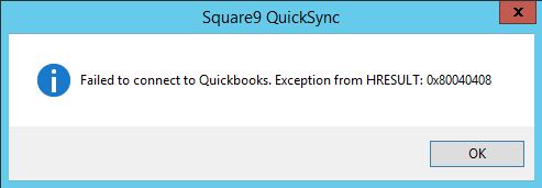 When initiating a sync, you receive an error “Failed to connect to QuickBooks. Exception from HRESULT: 0x80040408”